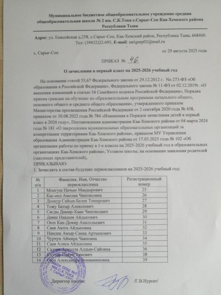 С 01 апреля начинается запись в 1 класс. https://school2-saryg-sep.rtyva.ru/?page_id=1886