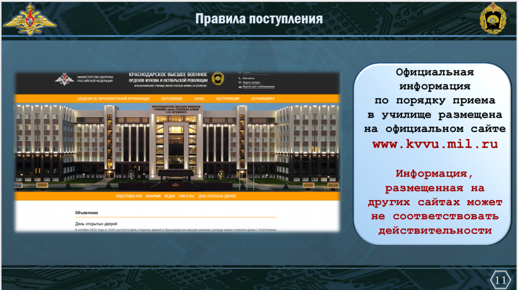 Более подробную информацию можно получить на официальном сайте Министерства обороны РФ в разделе «Образование».
